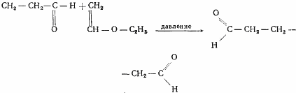 Получают глутаровый альдегид синтезом акролеина и винилэтилового эфира под высоким давлением: