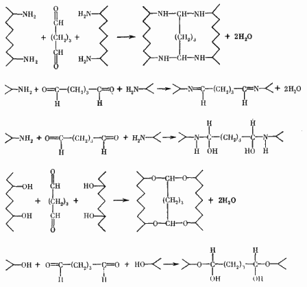 Предполагают [50], что глутаровый альдегид образует в коже олигомеры, которые сшивают полипептидные цепи коллагена. Каждая поперечная связь включает две-три молекулы альдегида.