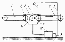 8 - сборник краски; 9 - насос; 10 - бачок для краски; 11 - планка для очистки>
