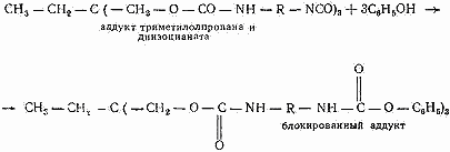 При нагревании покрытия до температуры 150 °С протекает обратная реакция: блокирующий агент отщепляется, а освобождающаяся изоцианатная группа вступает в реакцию с диолом.