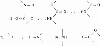 Наличие различных функциональных групп в полиуретанах создает большие возможности для образования межмолекулярных водородных связей трех типов [80]: