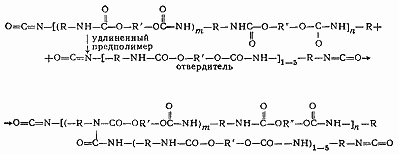 Таким образом, под символом R' в уравнении реакции подразумевается цепочка достаточно большой длины, а полиуретаны часто считают блоксополимерами.