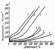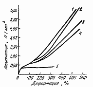 Рис. 61. Деформационные кривые пленок полиуретана с различной молекулярной массой: