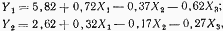 Адекватные уравнения получены для показателей адгезии покрытия в сухом (Y1) и мокром состоянии (Y2) и в безразмерной форме имеют следующий вид: