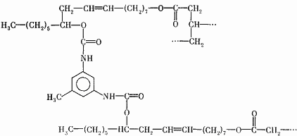 Полиуретановый лак. Согласно методике, разработанной в ЦНИИКПе, двухкомпонентный полиуретановый лак для кожи готовится на базе толуилендиизоцианата, в качестве гидроксилсодержащего компонента используется касторовое масло. Глицериды рицинолевой кислоты, составляющие касторовое масло, содержат вторичную гидроксильную группу, которая реагирует с изоцианатной группой с образованием структурированного продукта: