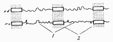 Рис.58. Схема строения полиуретана: 1 -мягкие сегменты; 2 -жесткие сегменты