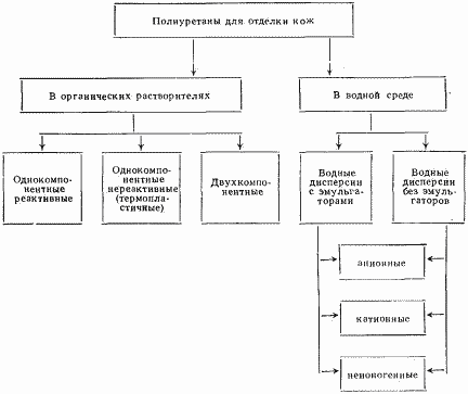 Типы полиуретановых покрытий. Применяемые для отделки кожи полиуретаны можно подразделить на две основные группы: системы в органических растворителях и системы в водной среде, в каждую из которых входит несколько типов [84].