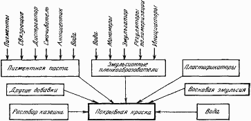 Наиболее типичный состав покрывной краски можно представить схемой [77].