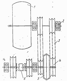 3 -клиновидные ремни; 4 - вариатор; 5 и 6 -коническая и зубчатая муфты привода