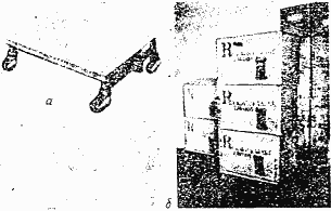 Транспортирующую площадку (рис. 48) используют для перевозки готовых перчаток, упакованных в картонные коробки. Размеры площадки кратны размерам коробок. Площадки выпускают двух вариантов: Р2 - размерами 300х500 мм и РЗ -размерами 500x700 мм. Площадки являются важным видом внутризаводского транспорта. Они легко перемещаются на четырех вращающихся колесиках.