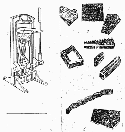 Рис. 20. Перчаточный ручной пресс. Рис.21. Перфорационные (а) и тиснильные (б) матрицы