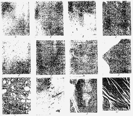 Кожа в перчатках пары должны быть во всех участках равномерной толщины и тягучести. Дефекты кожи показаны на рис. 49.
