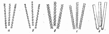 а -ручной однорядный; б - ройял; в -ручной многорядный; г -ручной греческий; д -империал.