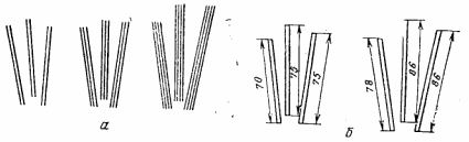 1. Машинные вышивки одно-, двух- и трехрядные (рис. 7, а, б) производят на четырехигольной плоской швейной машине марки 51С фирмы "Шуберт" (ФРГ). Чтобы отделка была выпуклой, под вышивку на изнаночную сторону детали кладут хлопчатобумажную нитку.