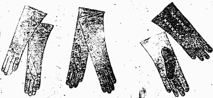 Очень эффектны, но трудоемки ажуры и тесьмы. Ажуры создают путем просекания отверстий и стягивания их ручной строчкой. Тесьмы - это узкие полоски очень тонкой кожи, которые складывают пополам и пришивают к манжетной части перчатки вместо окантовки или пришивают в разрез между двумя деталями перчатки.